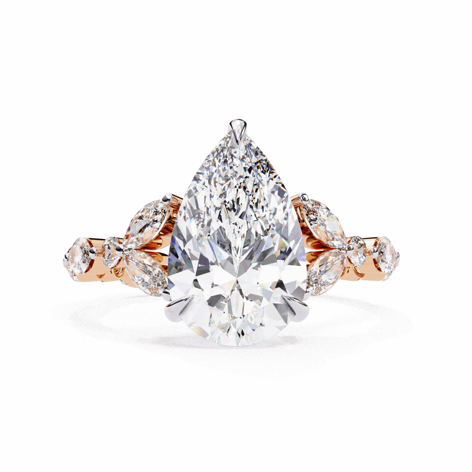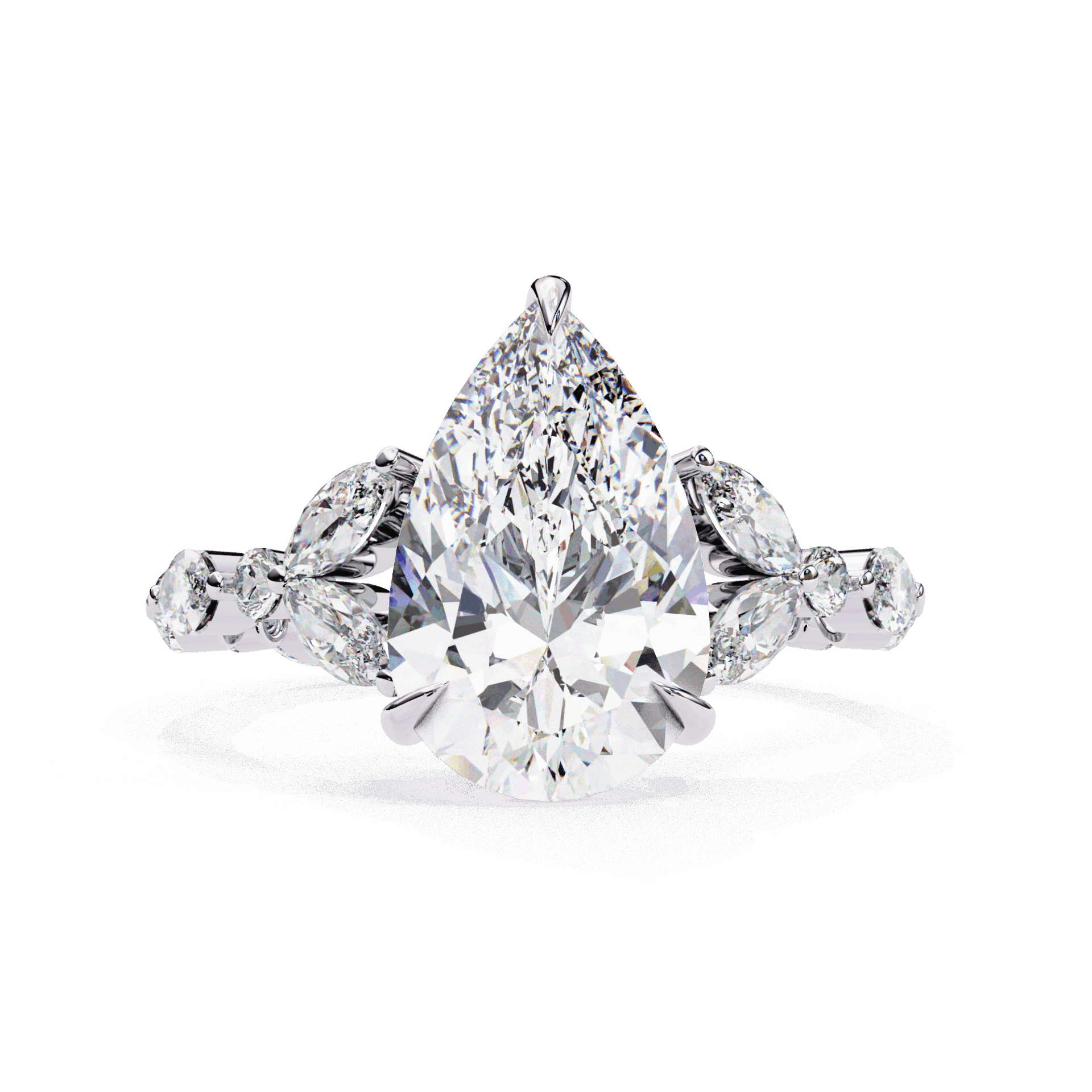 A pear-cut lab-grown diamond with 20 accent diamonds totaling 3.91 carats. Nearly 4 carats of teardrop presence.