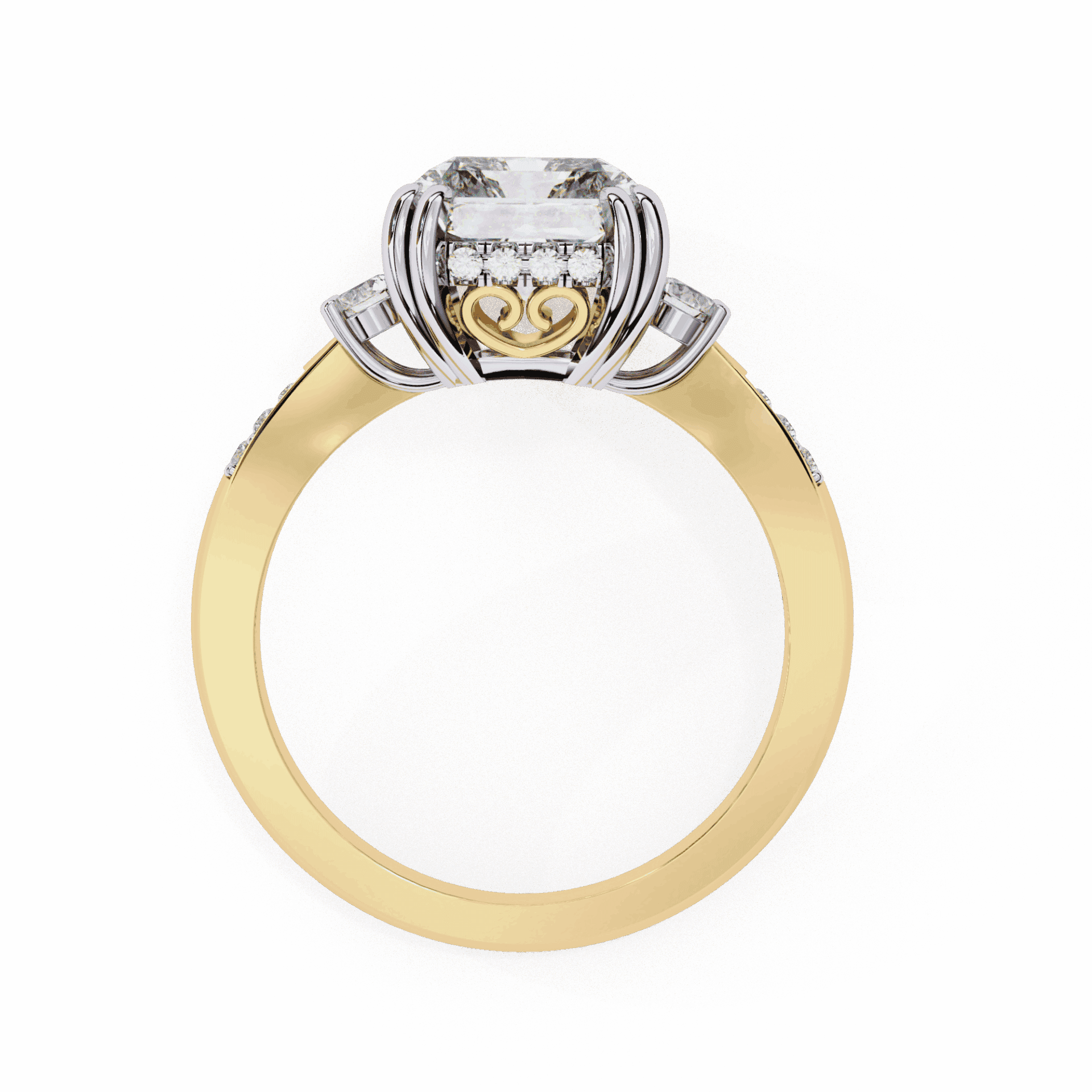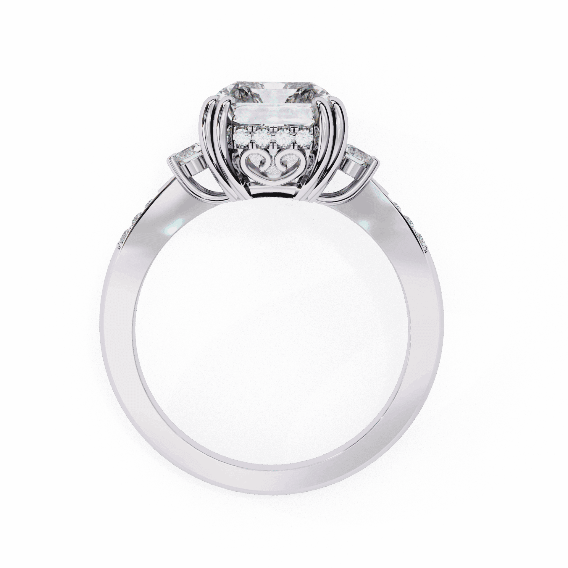 This design can be customized – different radiant size or side stone shape. Book a free consultation to discuss.