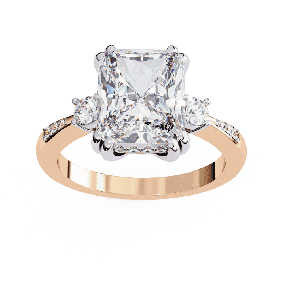 4 Carat Radiant Cut Solitaire in Three Stone Setting