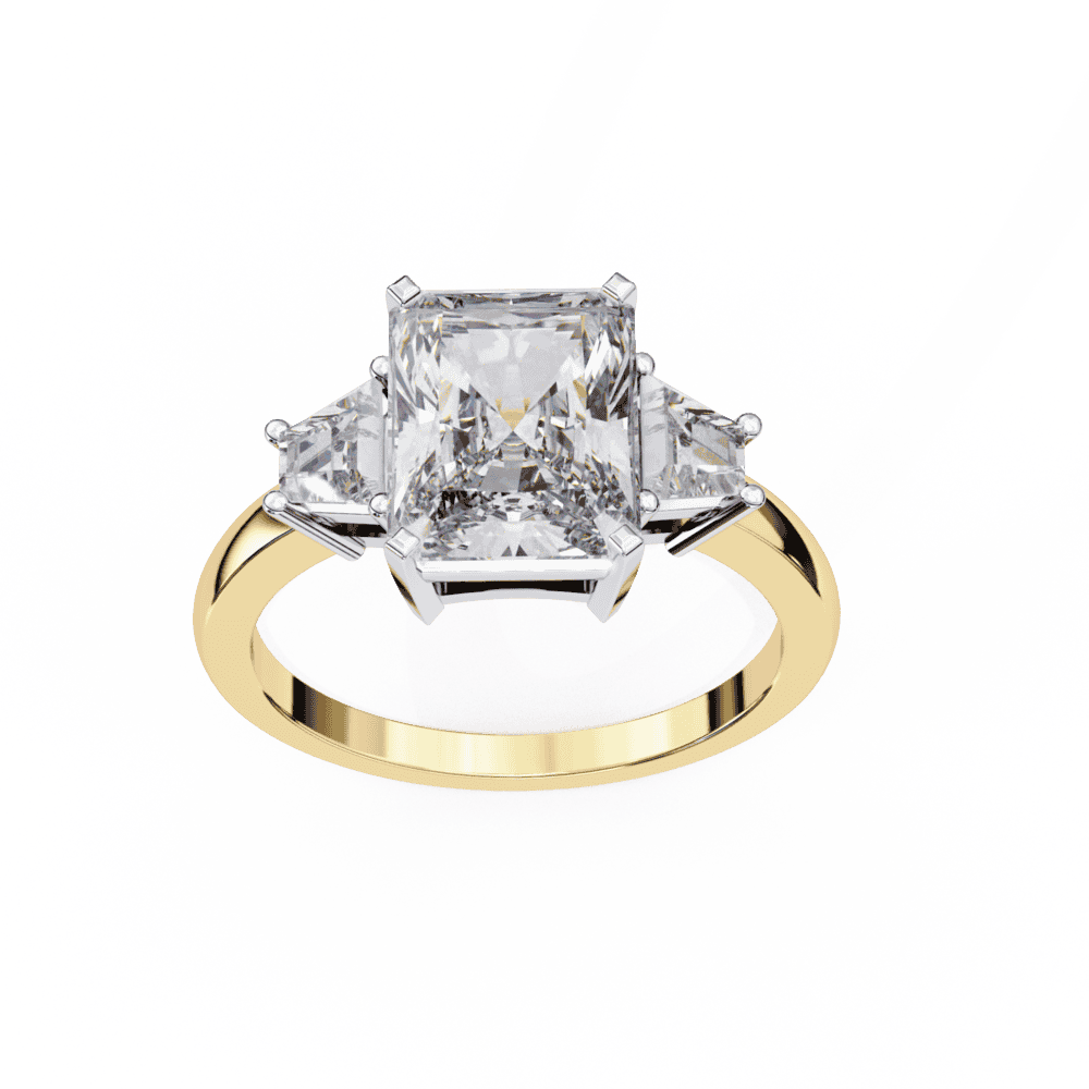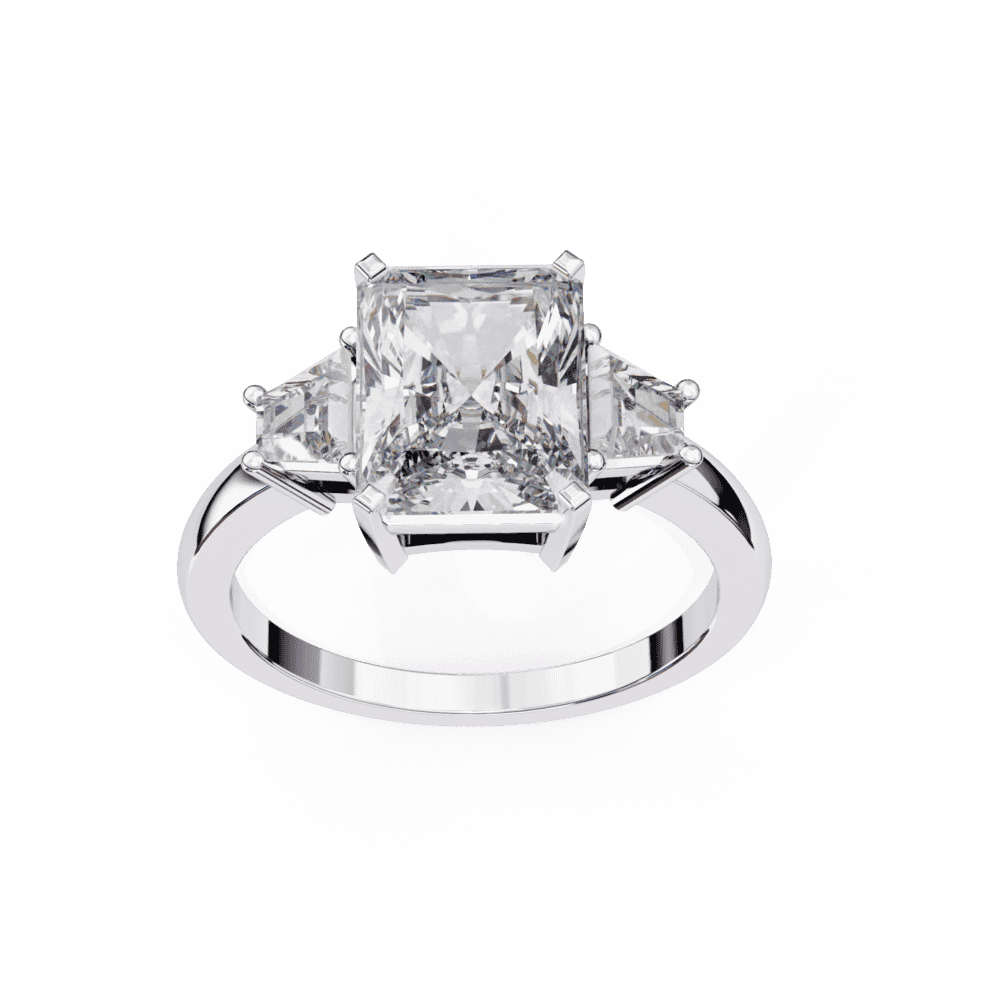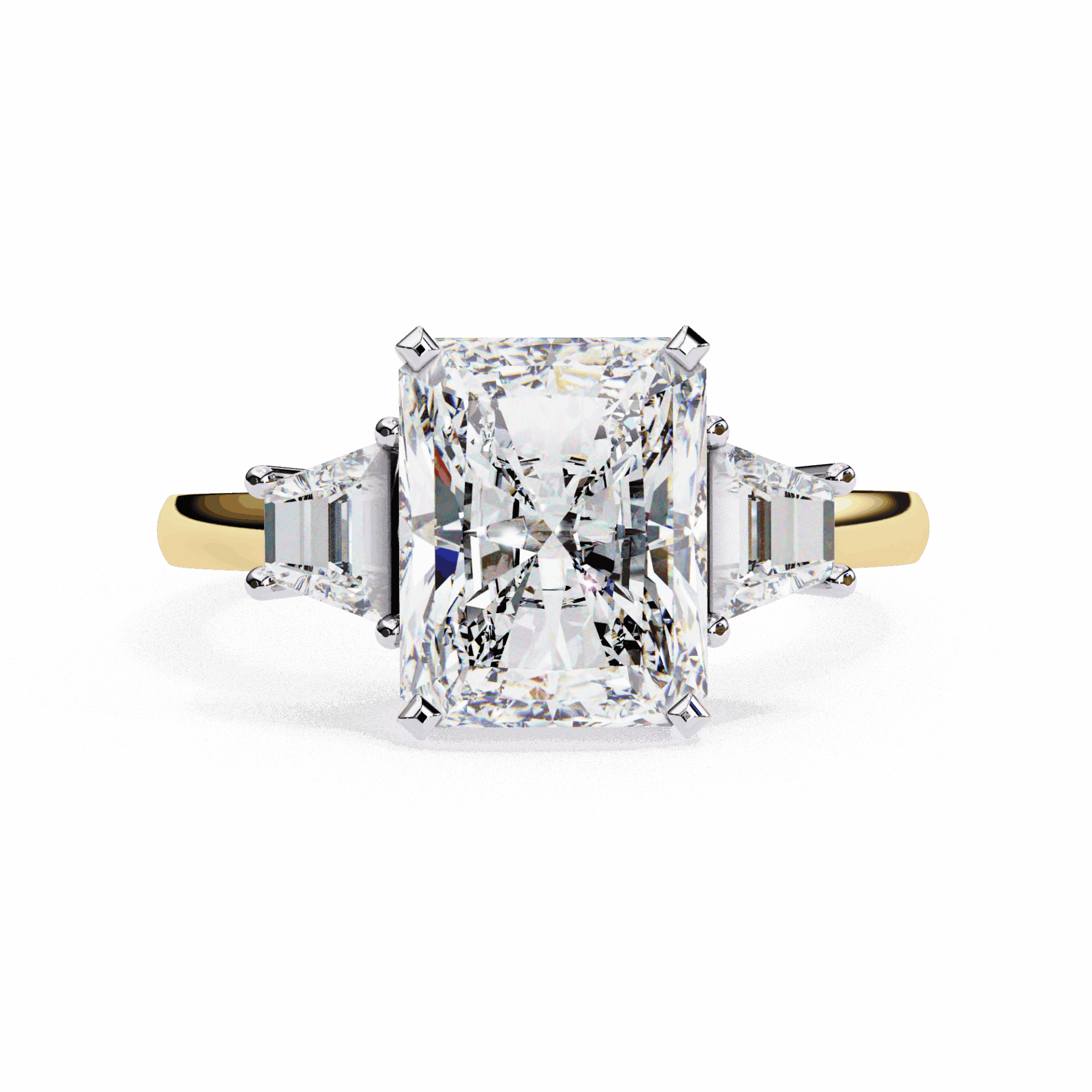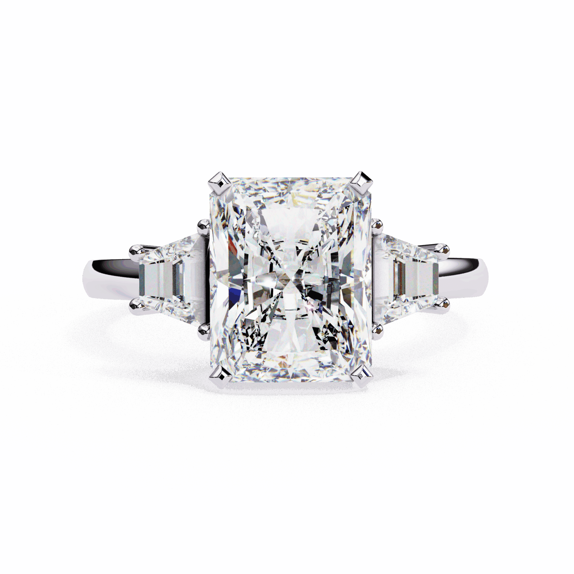 An emerald-cut lab-grown diamond with baguette accent stones, 37 diamonds totaling 5.2 carats. All step cuts for maximum sophistication.