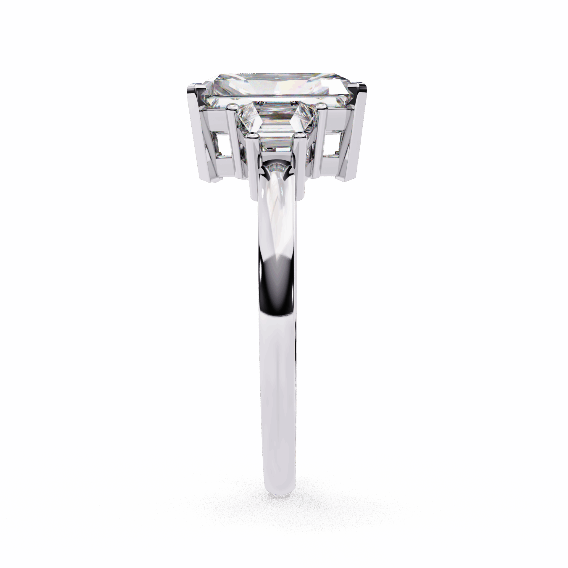 5.25 Carat Emerald Cut in Three Stone Solitaire Setting