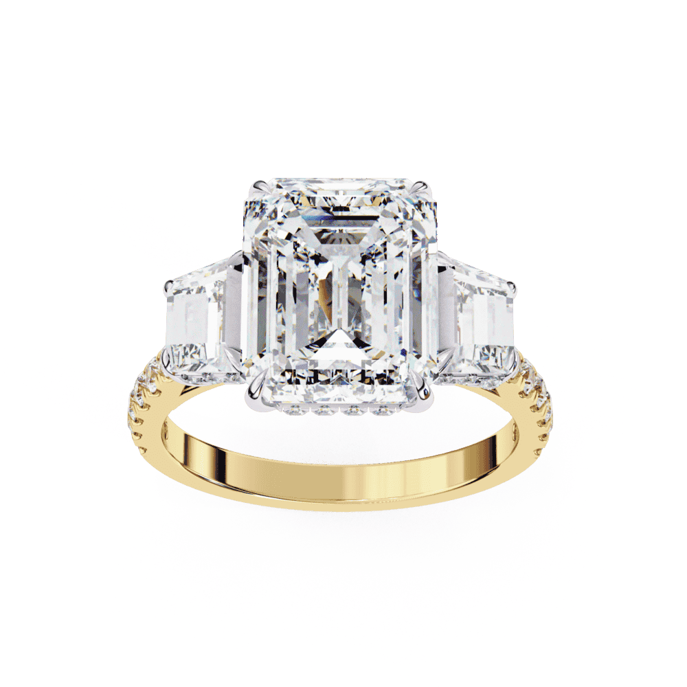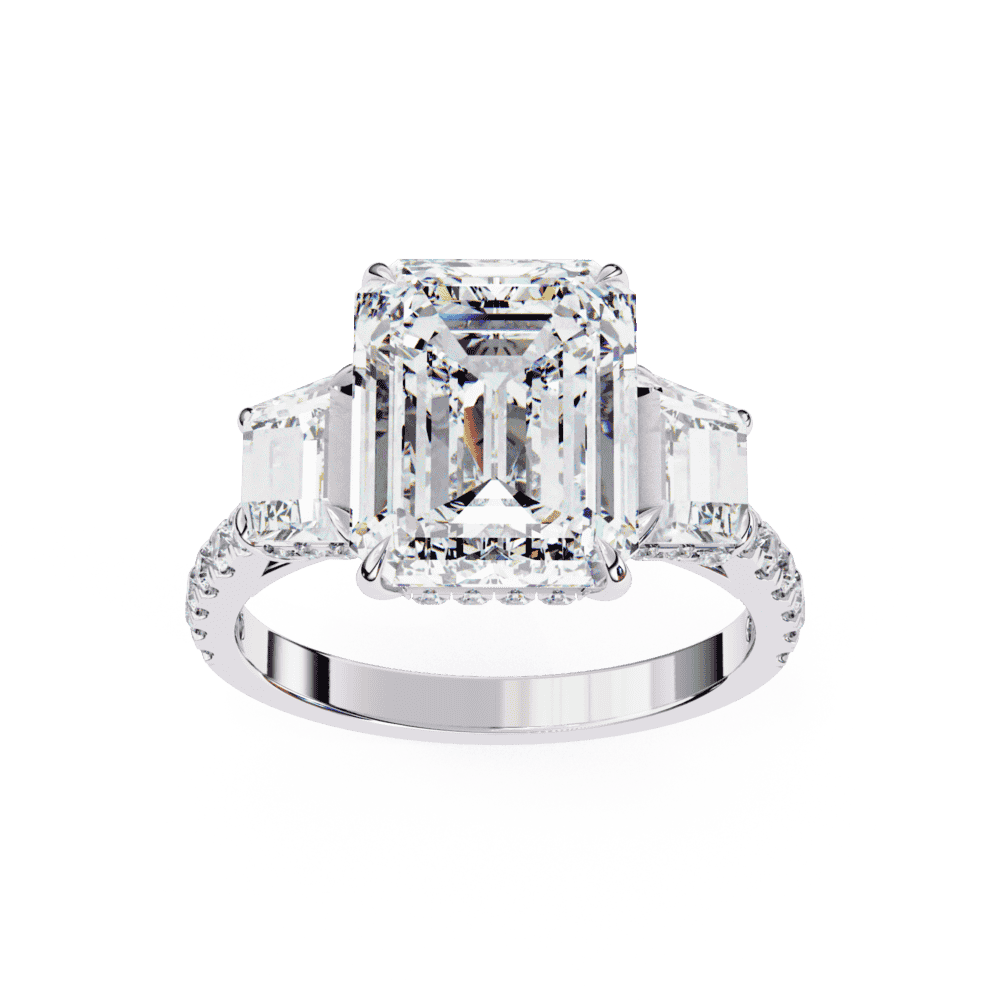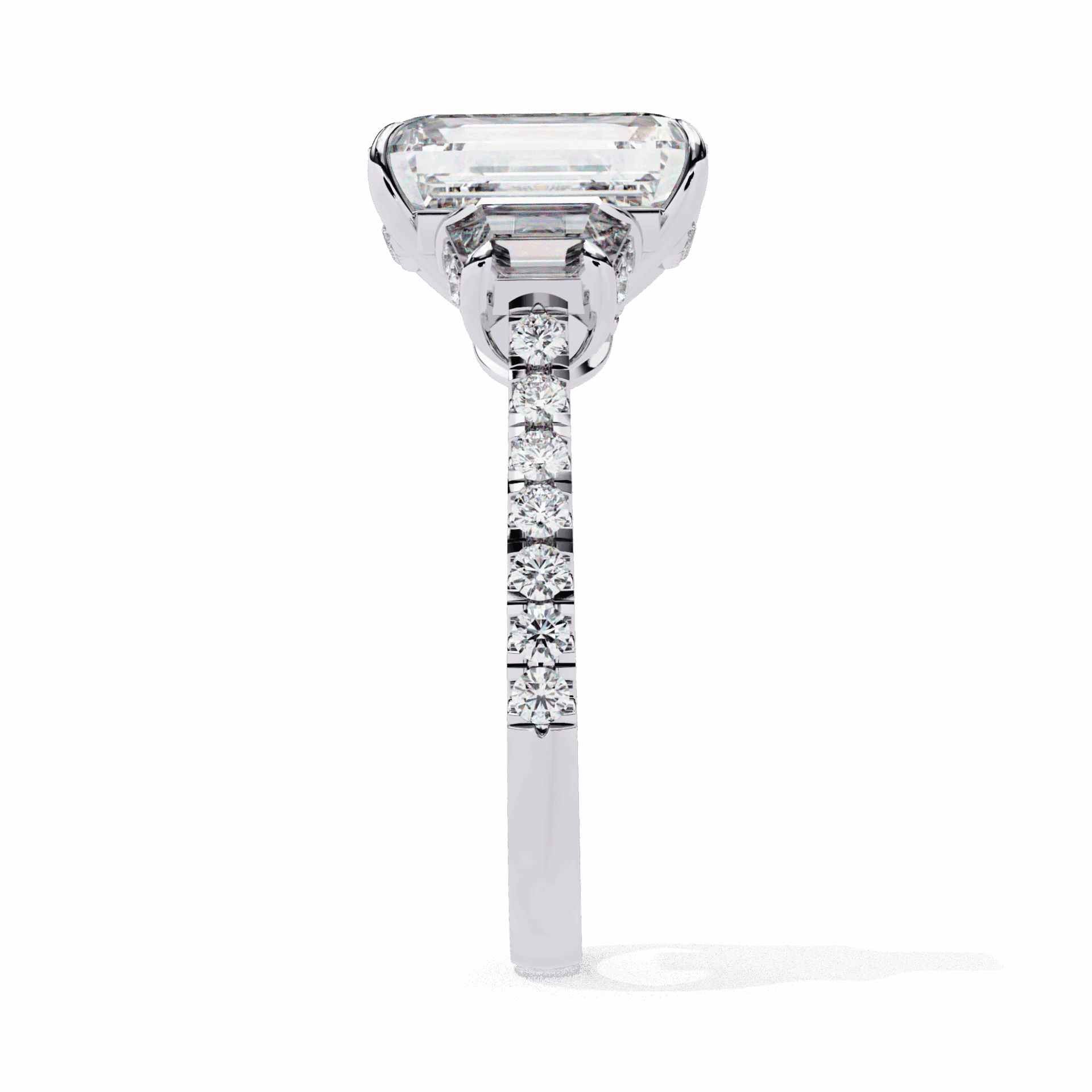 5.25 Carat Emerald Cut Solitaire in Three Stone Setting