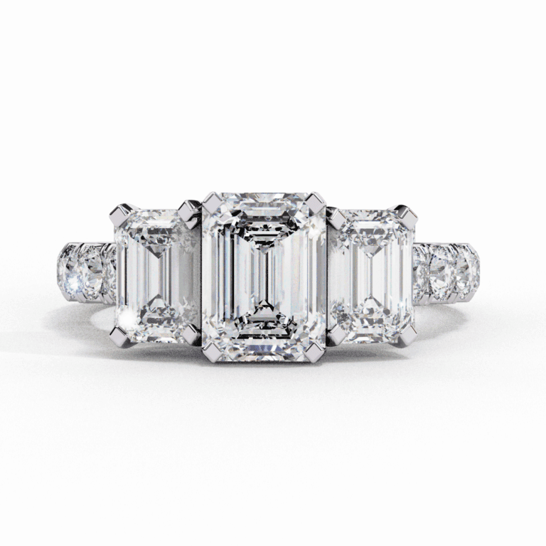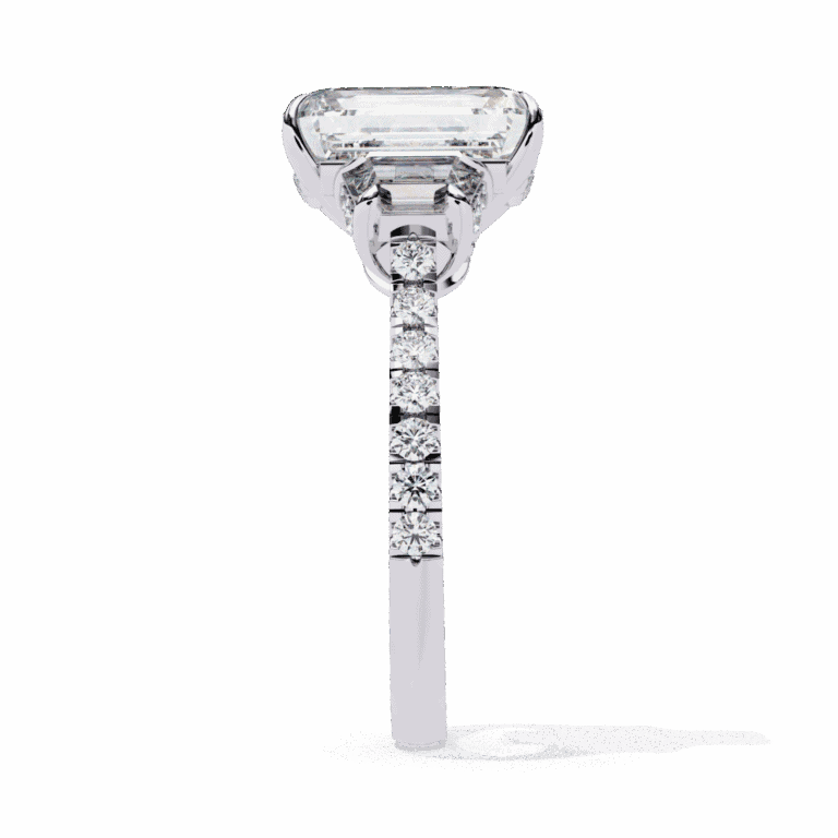 ₹419,827 – ₹449,576Price range: ₹419,827 through ₹449,5765.25 Carat Emerald Cut Solitaire in Three Stone Setting