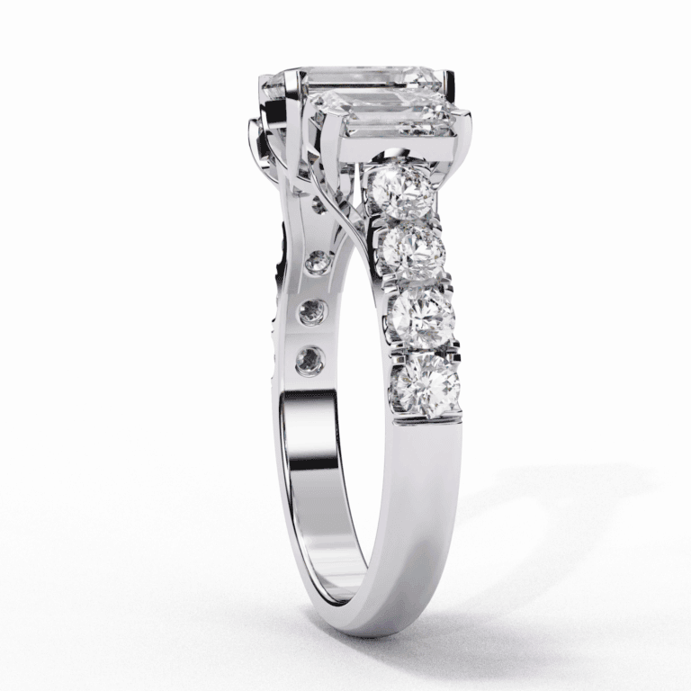 3 Carat Emerald Cut Solitaire in Three Stone Setting